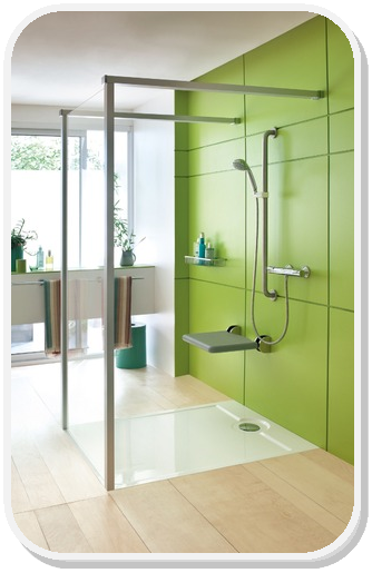 La douche pour personne à mobilité réduite ou les séniors est en accès plain pied. Elle permet donc d'accueillir encore plus aisément les personnes ne pouvant effectuer une gymnastique même simple.